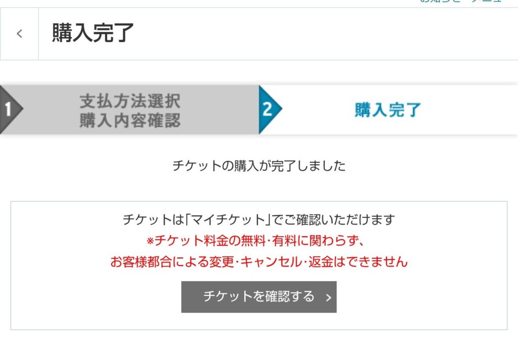 ④ 購入完了したら完了です。使用済みのコードなどの場合はエラーが起きるので、その場合はサークル申込者に相談を。